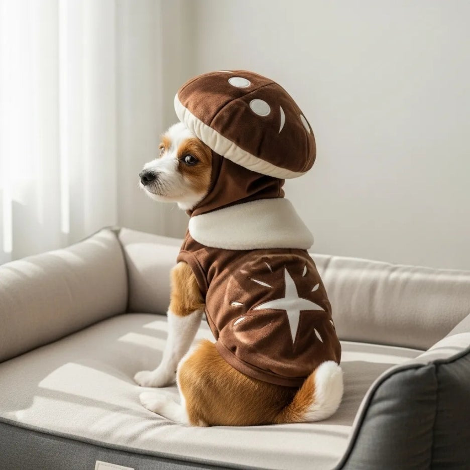 우리 댕댕이에게 귀여운 버섯 옷을 입히는 상상, 너무 사랑스럽지 않나요?