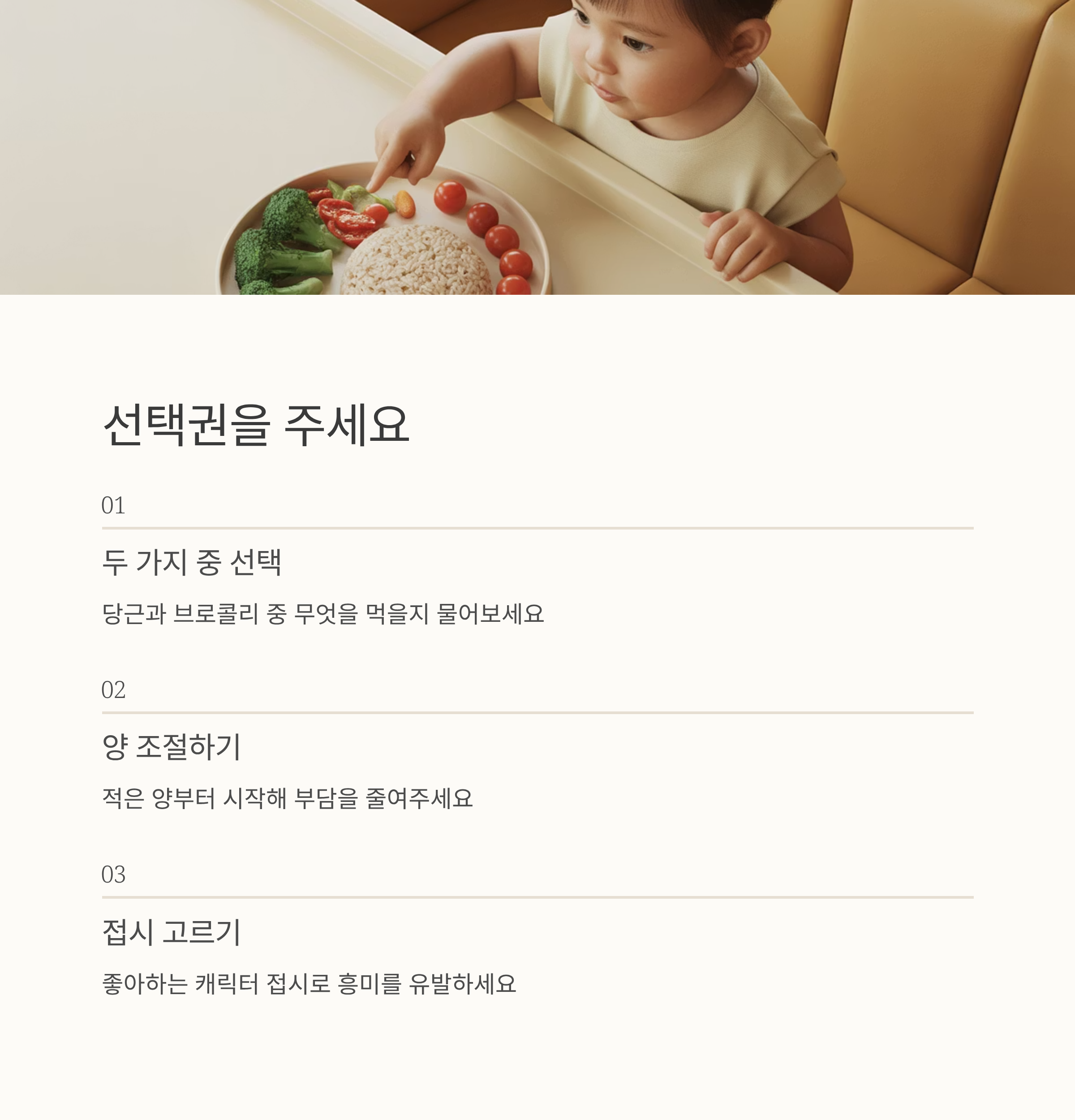 - “반찬을 스스로 고르게 하니 거부가 줄었어요. 직접 고른 건 먹더라고요.”