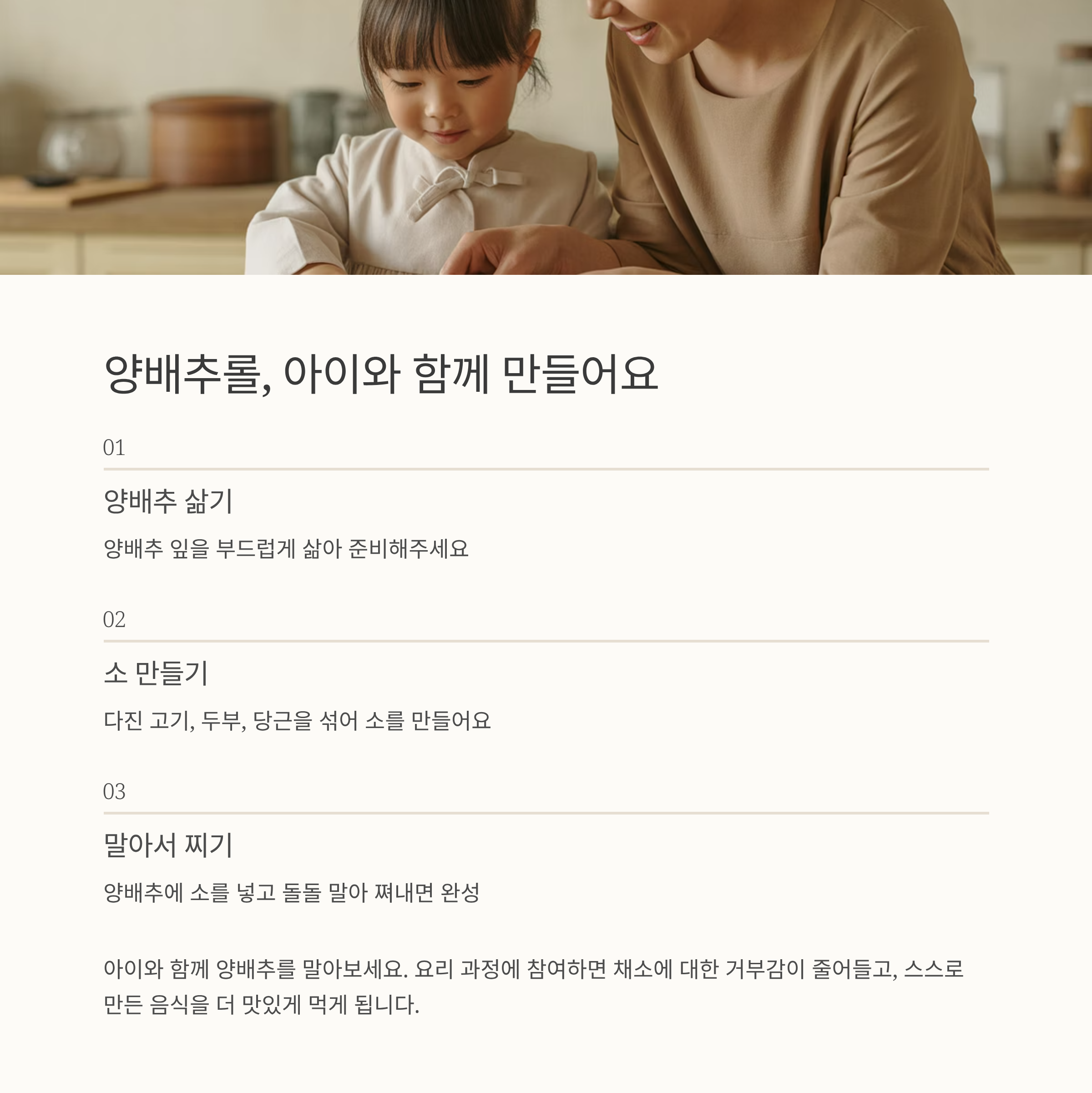 오늘 소개한 요리법 중 하나만이라도 아이와 함께 만들어 보세요.