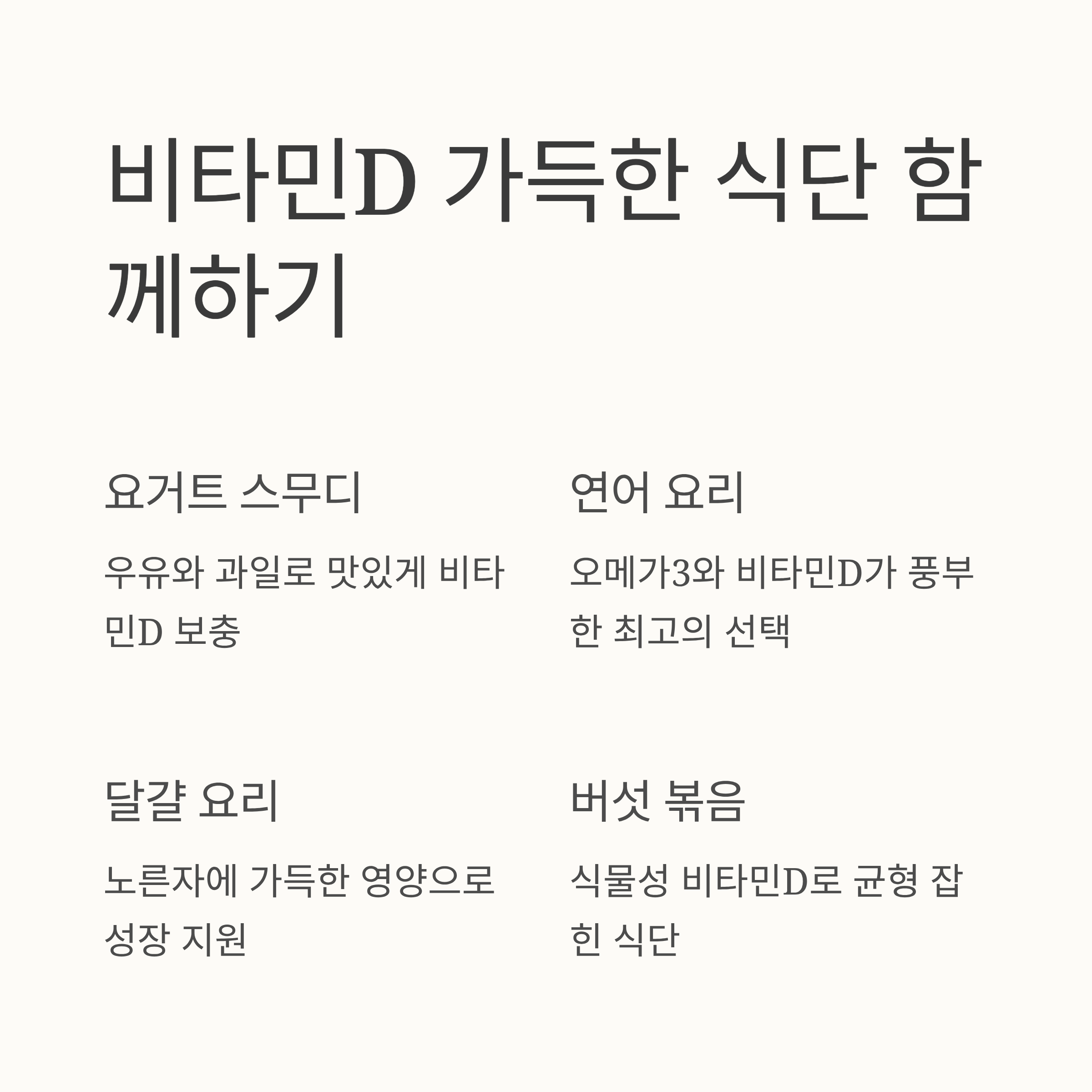 | 우유, 두유 (강화 제품) | 약 1.2μg | 시리얼, 스무디 |