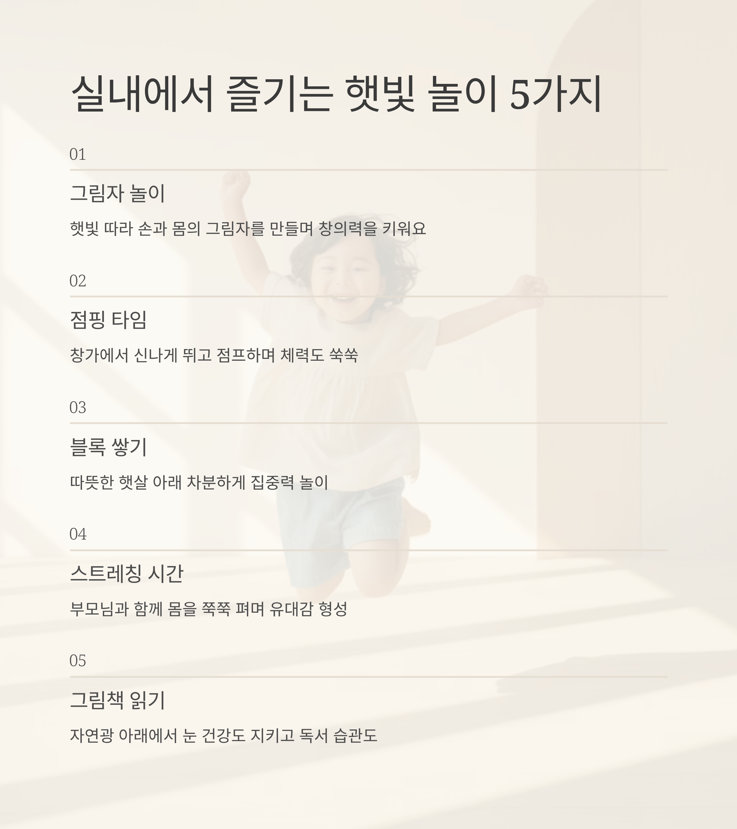 2. 비타민D 생성과 활성화를 돕는 실내 놀이법 BEST 5