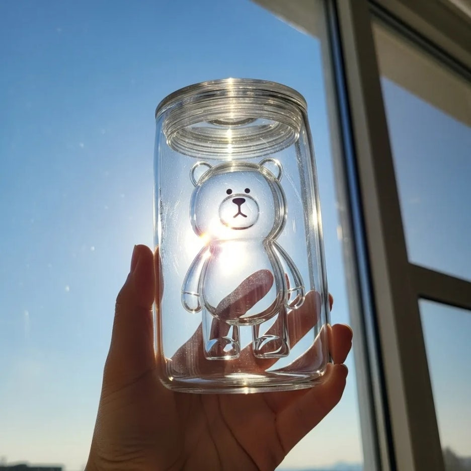 단순히 겉면에 그림이 그려진 게 아니라, 이중벽 구조 속에 입체적인 곰돌이 피규어가 들어가 있거나 돔 리드(뚜껑) 안에 귀여운 베어리스타가 콕 박혀 있는 형태거든요.