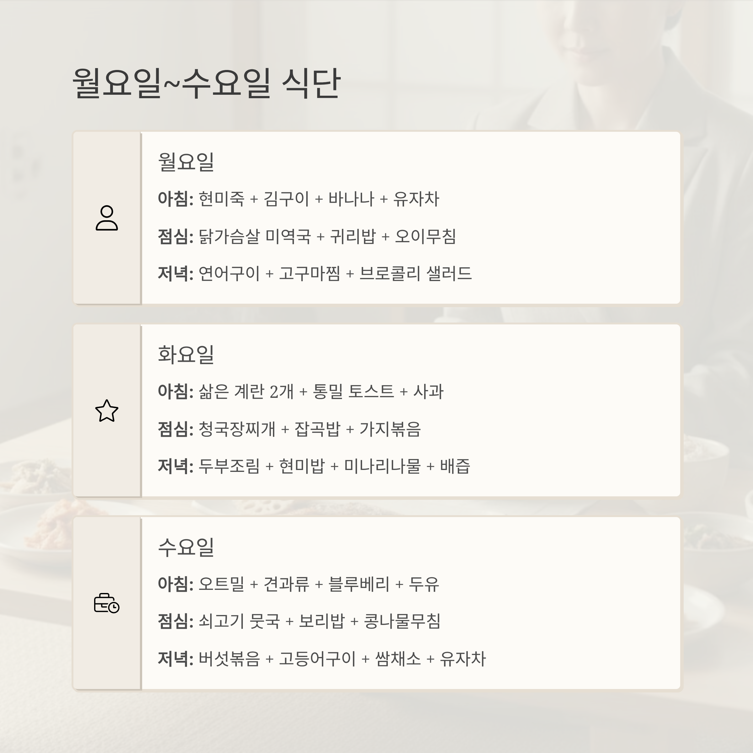 🗓️ 일주일 면역 식단표 (아침 / 점심 / 저녁)