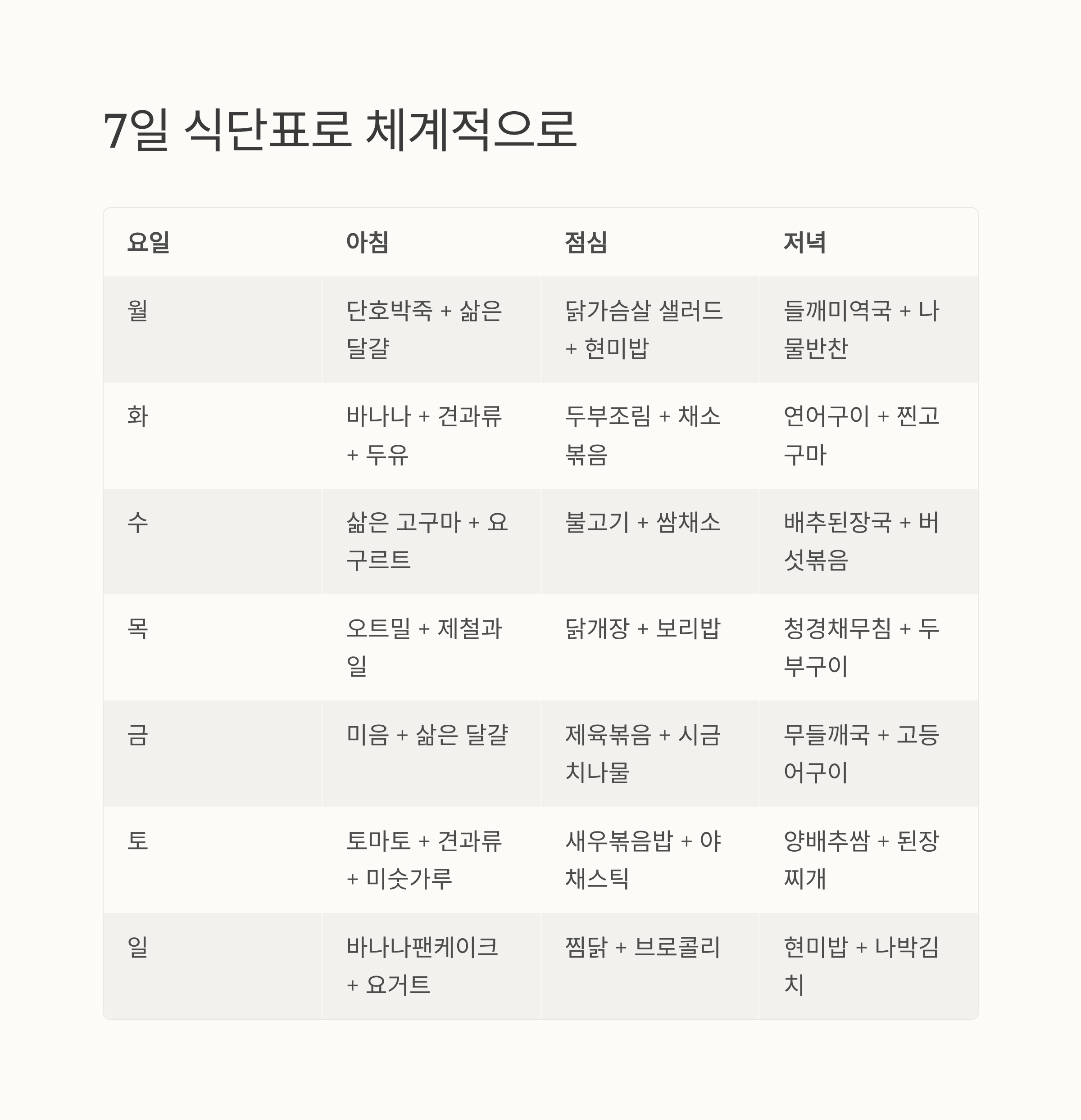 7일 식단표로 체계적으로