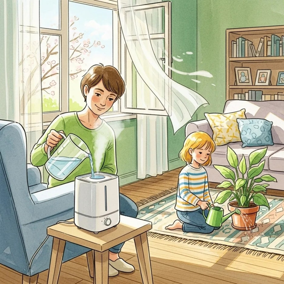 또한 가습기를 사용할 때는 매일 물을 교체하고 청결하게 관리하는 것이 중요하며, 젖은 수건이나 식물 등을 활용한 자연 가습도 좋은 방법입니다.